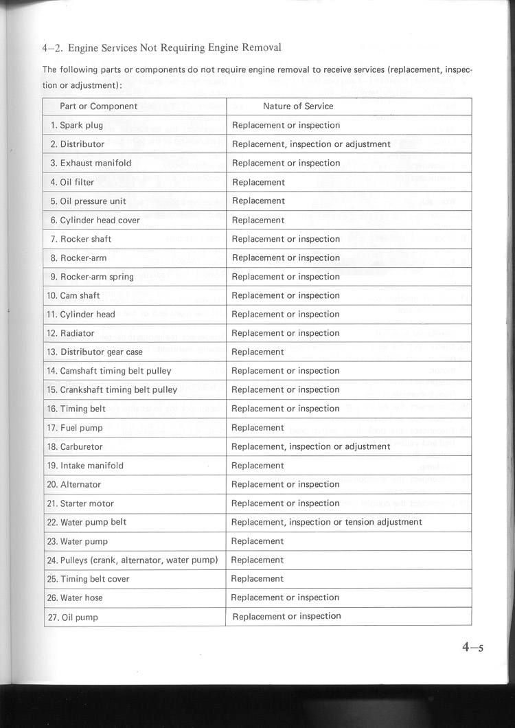 Engine Sercives Not Requiring Engine Removal